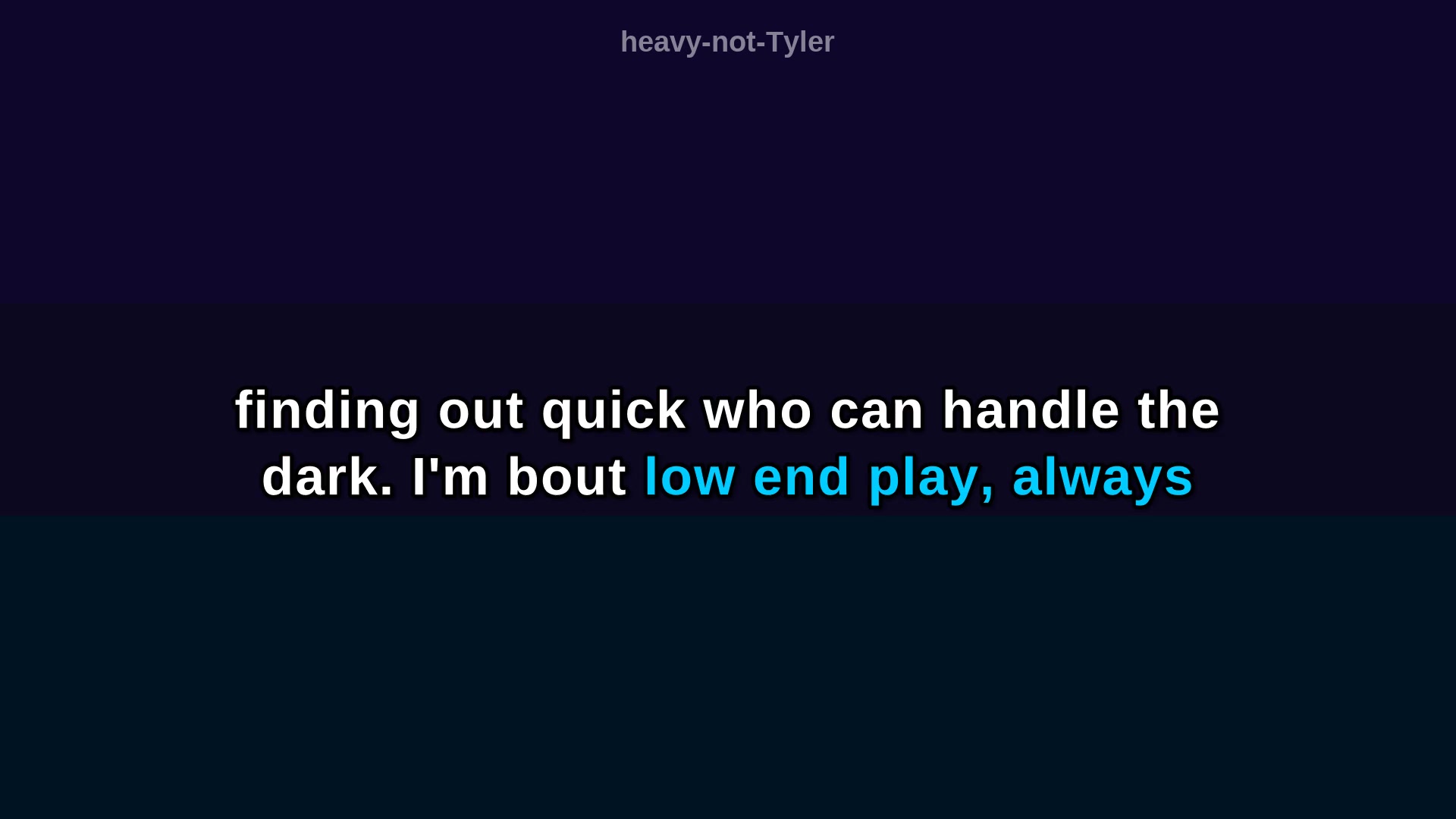 -Karaoke version with tracked lyrics for not Tyler's new single Heavy -Word-perfect synced lyrics rendered directly from the studio audio -Dropped exclusively on Open.Video before the streaming platforms